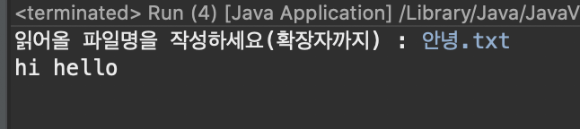 System.out.print("읽어올 파일명을 작성하세요(확장자까지) : ");