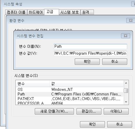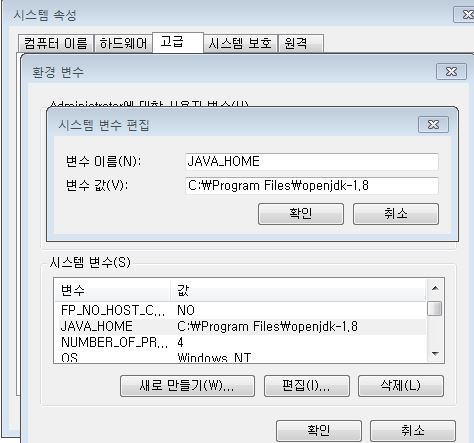 2) 윈도우7 자바 환경변수 설정 오류