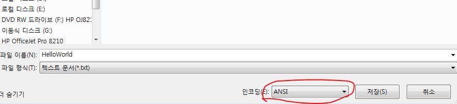 그래서 찾아보니UTF-8로 설정해놨을 경우 cmd컴파일이 진행이 안되고 ANSI로 설정해야한다는 내용을 발견 ! 바로 적용해보았다.