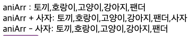 let aniArr = ['토끼','호랑이','고양이','강아지','팬더'];