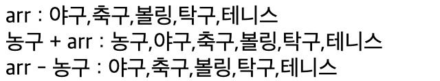 let arr = ['야구','축구','볼링','탁구','테니스'];