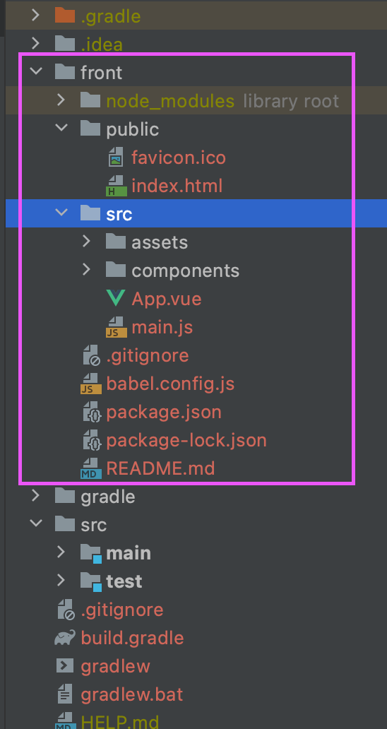 [ 프로젝트가 생성된 모습 - 프로젝트 안에 vue를 구성하면 된다.]